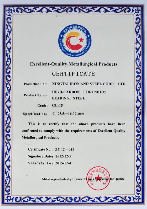 The φ5.5~16mm wire GCr15 for bearing awarded the superior quality product of Metallurgy Industry.