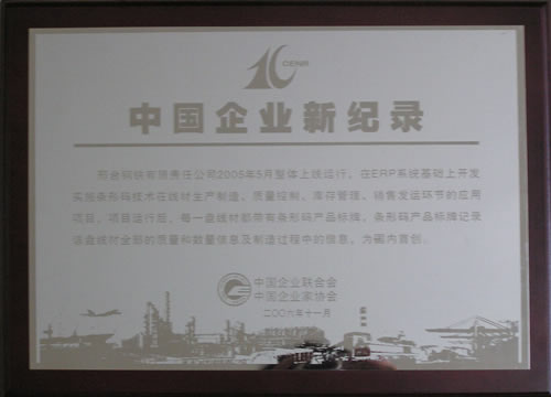 In 2005, the barcode system, based on ERP system, was put into use in all processes, including production, QC, strorage, sales and transportation.Xingtai Steel became the first metallurgical comany using barcode card on it's products.