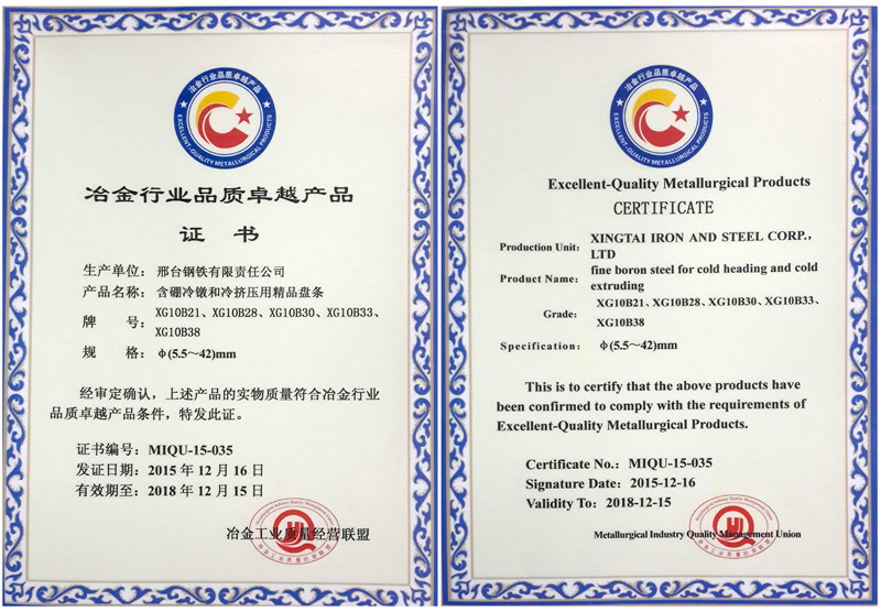 含硼冷鐓和冷擠壓用精品盤條XG10B21、XG10B28、XG10B30、XG10B33、XG10B38φ(5.5~42)mm獲冶金行業(yè)品質卓越產(chǎn)品