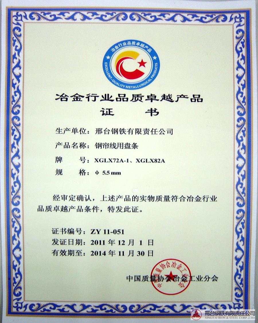 拉拔用高碳鋼盤條SWRH72A獲冶金產(chǎn)品實(shí)物質(zhì)量金杯獎