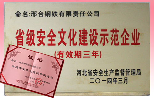 - 邢鋼被授予“省級安全文化建設(shè)示范企業(yè)”稱號