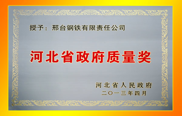 5月27日,河北省推進質量興省工作電視電話會議在石家莊河北會堂召開,邢鋼榮獲“河北省政府質量獎”,該獎項是河北省在質量領域的最高榮譽。