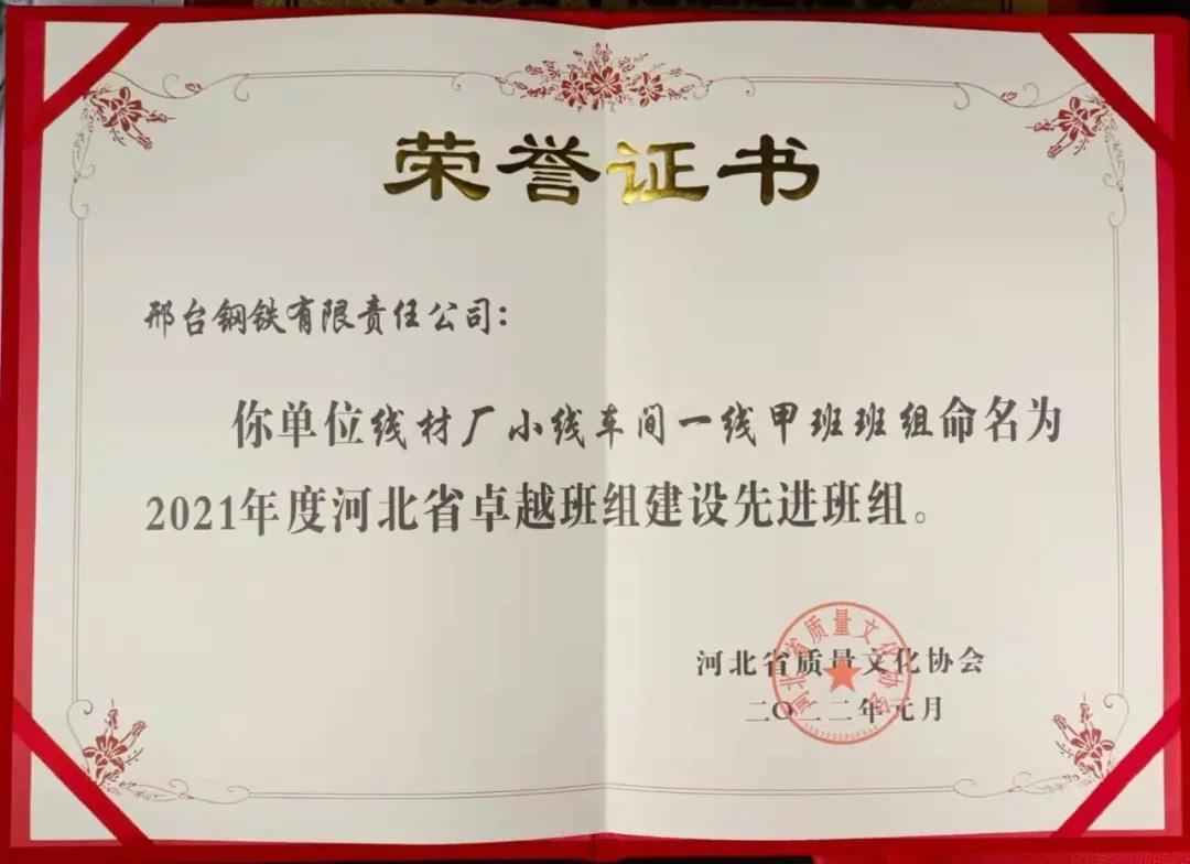 - 邢鋼兩個(gè)班組獲得省級(jí)榮譽(yù)表彰