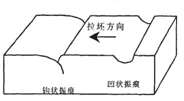 通過(guò)對(duì)不同連鑄條件下鑄坯表面撮痘進(jìn)行金相分析,最常見的振痕形態(tài)基本上可分為兩種:凹陷狀振痕和鉤狀振痕,其典型的形貌如下圖所示。