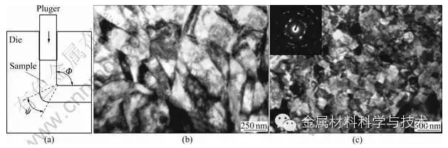 在金屬的成形過程中將超大塑性應(yīng)變應(yīng)用于一定體積的金屬中以獲得超細晶材料的過程,其本質(zhì)是細晶強化。通過大的塑性變形使材料的位錯密度增加,形成位錯壁,將位錯壁轉(zhuǎn)化為大角度晶界,從而獲得超細晶組織以及控制形成不同的織構(gòu)。該技術(shù)已經(jīng)在制備各種超細晶材料領(lǐng)域獲得了廣泛的應(yīng)用。