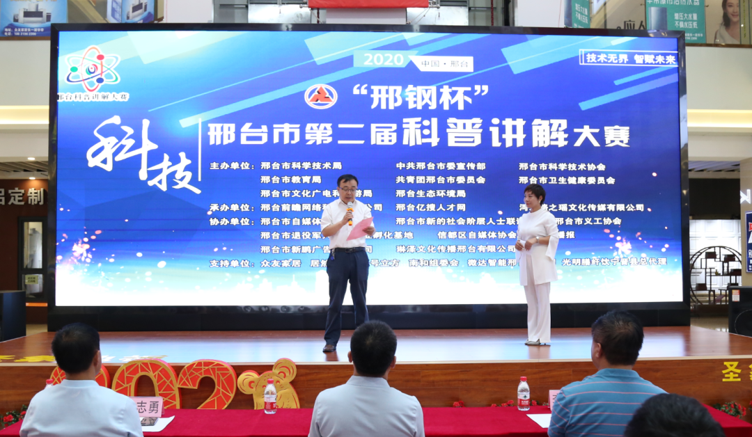 8月15日上午,由邢臺市科學(xué)技術(shù)局、中共邢臺市委宣傳部、邢臺市科學(xué)技術(shù)協(xié)會、邢臺市教育局、共青團邢臺市委員會、邢臺市衛(wèi)生健康委員會、邢臺市文化廣電和旅游局、邢臺市生態(tài)環(huán)境局聯(lián)合舉辦的“邢鋼杯”2020邢臺市第二屆科普講解大賽啟動儀式在邢臺眾友家居活動廳舉行。