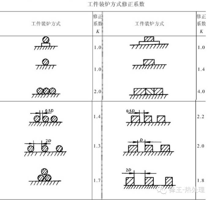 傳統(tǒng)的碳素鋼淬火加熱時(shí)間的計(jì)算公式:T=K•αD