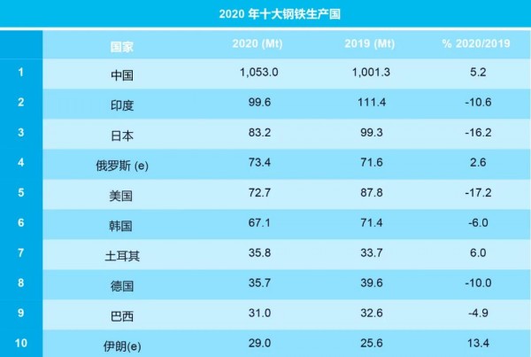 據(jù)世界鋼協(xié)統(tǒng)計,2020年,全球粗鋼產量達到18.64億噸,同比下降0.9%。
