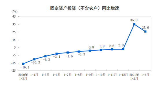 2021年1-3月全國固定資產(chǎn)投資增長(zhǎng)25.6%