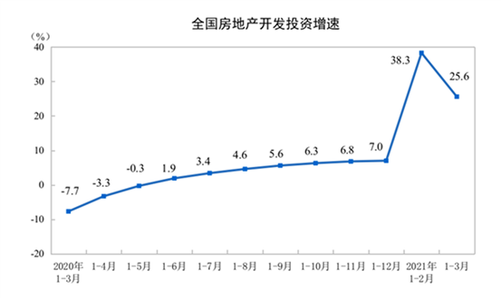 2021年1-3月全國房地產(chǎn)開發(fā)投資同比增長(zhǎng)25.6%