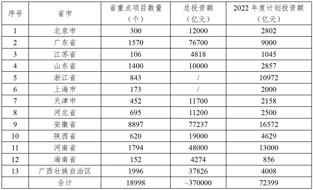 表3 2022年13?。▍^(qū)、市)重點項目投資情況