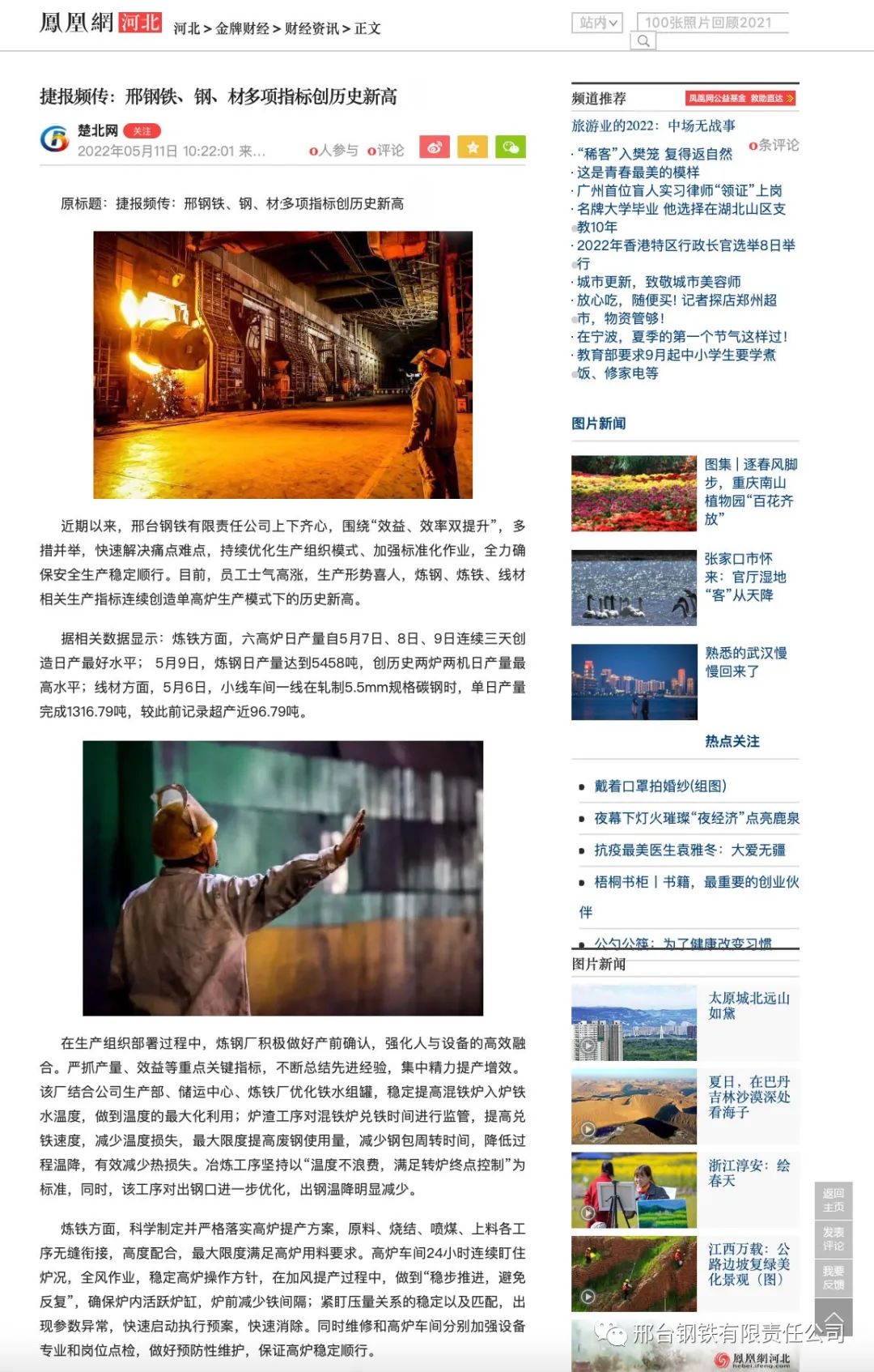 近期以來,邢臺鋼鐵有限責(zé)任公司上下齊心,圍繞“效益、效率雙提升”,多措并舉,快速解決痛點難點,持續(xù)優(yōu)化生產(chǎn)組織模式、加強(qiáng)標(biāo)準(zhǔn)化作業(yè),全力確保安全生產(chǎn)穩(wěn)定順行。目前,員工士氣高漲,生產(chǎn)形勢喜人,煉鋼、煉鐵、線材相關(guān)生產(chǎn)指標(biāo)連續(xù)創(chuàng)造單高爐生產(chǎn)模式下的歷史新高。