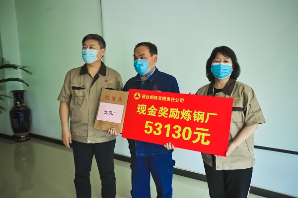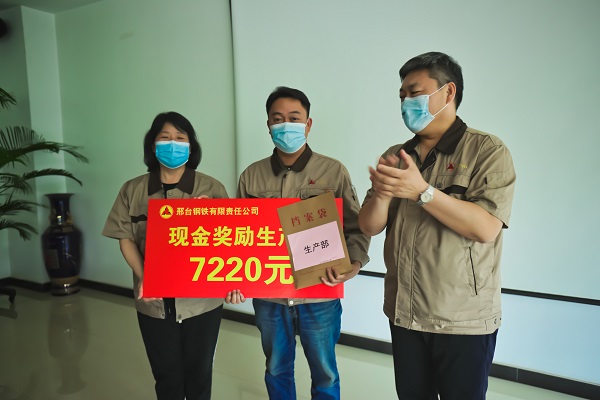 5月16日下午,公司207會(huì)議室傳來(lái)陣陣熱烈的掌聲,煉鐵廠、煉鋼廠、線材廠、焦化廠、生產(chǎn)部主管人員興高采烈地走到臺(tái)前,從公司領(lǐng)導(dǎo)張皓若、劉宏偉手中接過(guò)榮譽(yù)牌和沉墊墊的現(xiàn)金獎(jiǎng)勵(lì)。此項(xiàng)舉措,是邢鋼公司對(duì)各生產(chǎn)指標(biāo)連創(chuàng)新高后激勵(lì)政策的首次兌現(xiàn),對(duì)各單位在“雙效提升”工作中所付出艱辛努力的充分肯定。