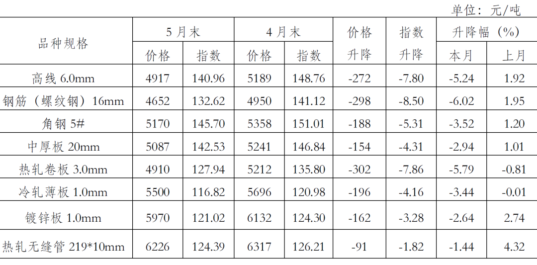 主要鋼材品種價格及指數(shù)變化情況表