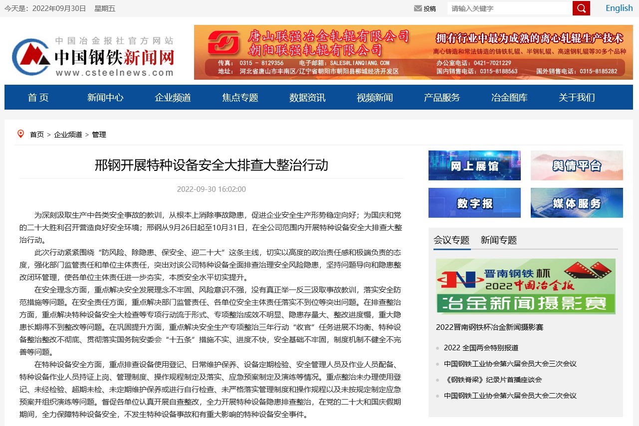 為深刻汲取生產(chǎn)中各類安全事故的教訓(xùn),從根本上消除事故隱患,促進(jìn)企業(yè)安全生產(chǎn)形勢(shì)穩(wěn)定向好;為國(guó)慶和黨的二十大勝利召開營(yíng)造良好安全環(huán)境;邢鋼從9月26日起至10月31日,在全公司范圍內(nèi)開展特種設(shè)備安全大排查大整治行動(dòng)。