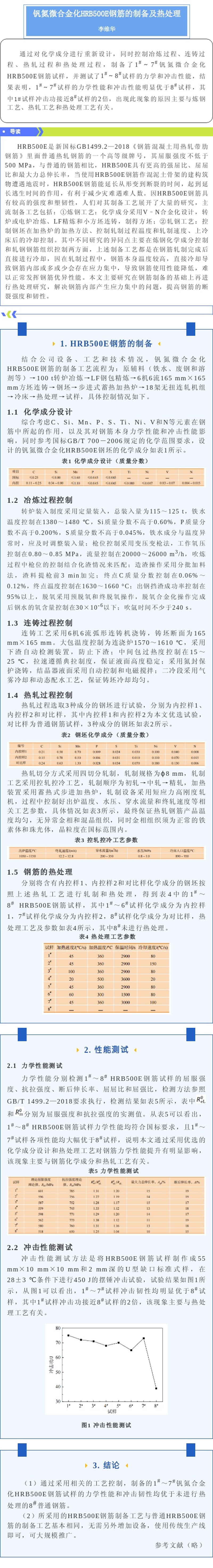 釩氮微合金化HRB500E鋼筋的制備及熱處理