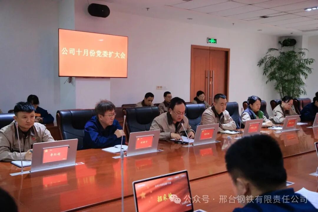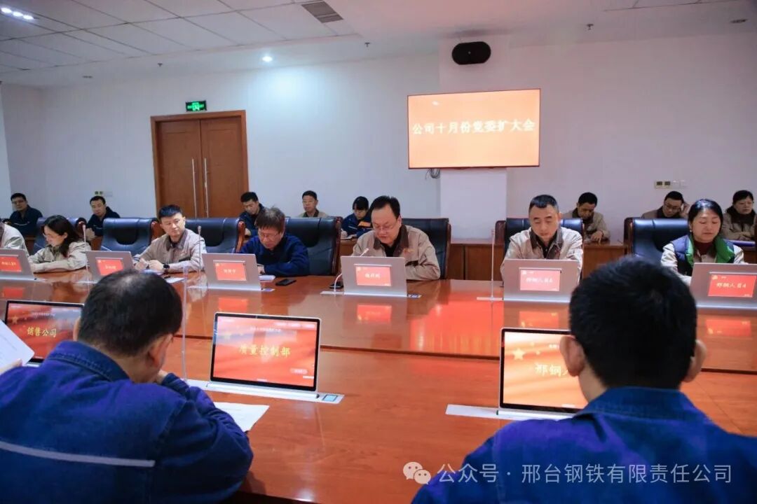 On October 30, the Company's Party Committee convened the October Enlarged Party Committee Meeting in Conference Room 207 of the company office building. Senior leaders of the company including Tian Xinzhong, Wei Ligang and Li Hongchao, as well as all middle-level managers and professional staff at the director and deputy director levels attended the meeting. Relevant personnel stationed at the new factory in Weixian County participated via the video conference system.